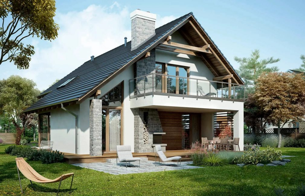 Это просторный двухэтажный особняк в современном стиле, идеально подходящий для семьи из 4-5 человек.