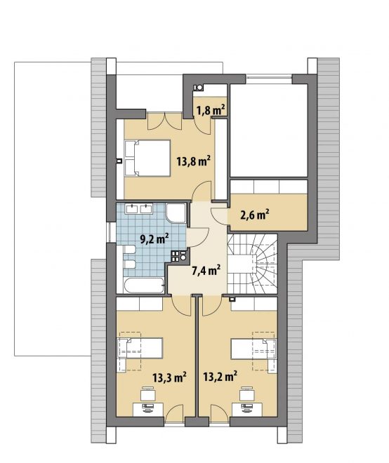 Мансардный этаж, на который ведет удобная поворотная лестница, состоит из трех спален (одна из которых имеет свой гардероб), отдельной комнаты-гардеробной и ванной.