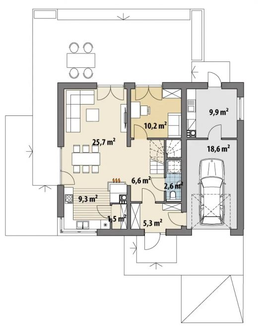 Как и другие проекты от AET-HOME, этот дом отличается низким энергопотреблением и практически нулевым теплопотерями, что позволяет существенно экономить на отоплении.