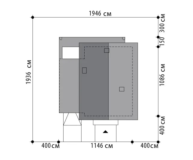 К технической зоне первого этажа относятся гараж на одну машину и котельная. По желанию заказчика можно сделать дополнительную дверь, ведущую прямо из прихожей в гараж (см. красные линии на плане).
